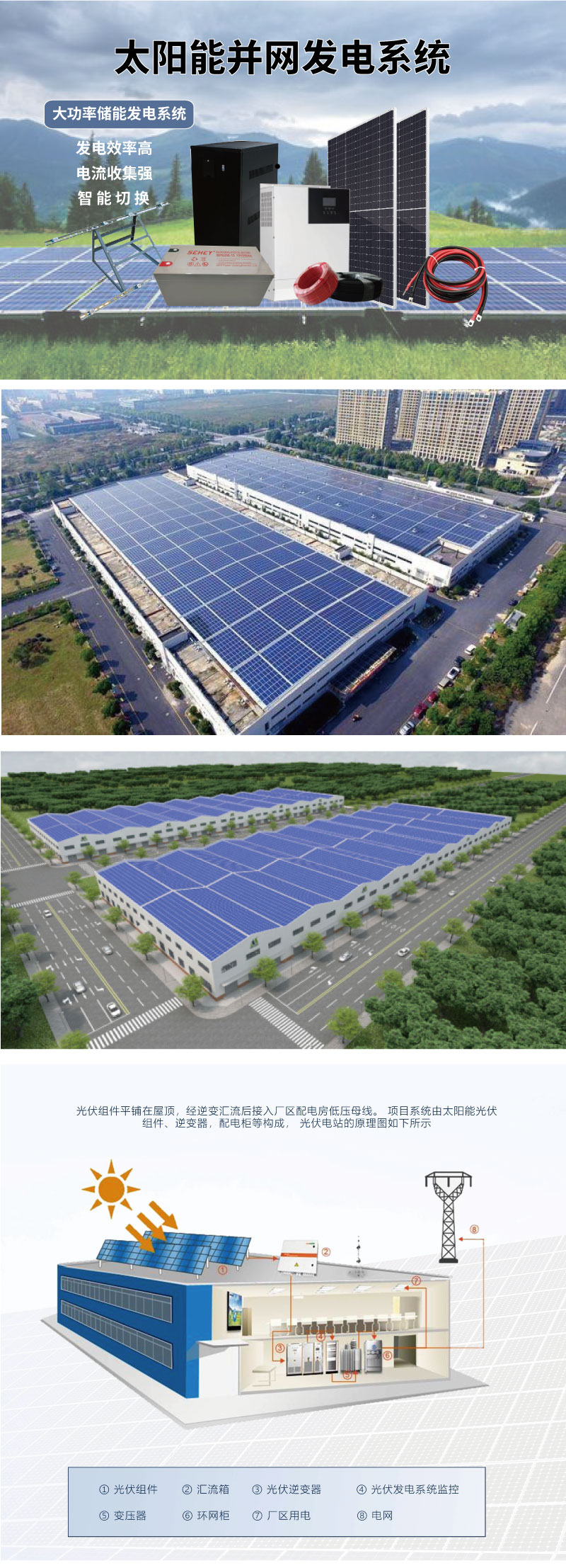 企業屋頂廠房并網光伏發電大型分布式太陽光伏發電儲能系統一體化
