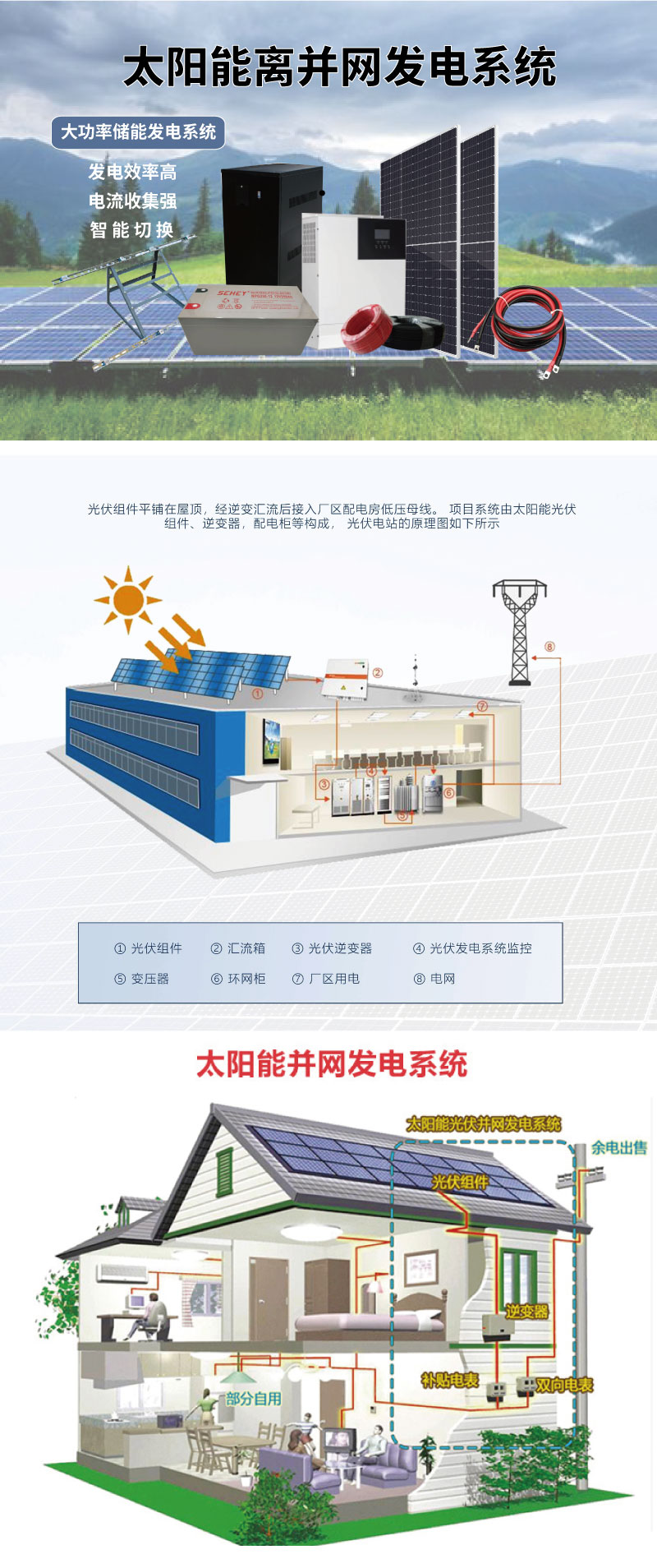 工廠家用光伏發電系統太陽能板光伏電站工程一站式離并網光伏系統
