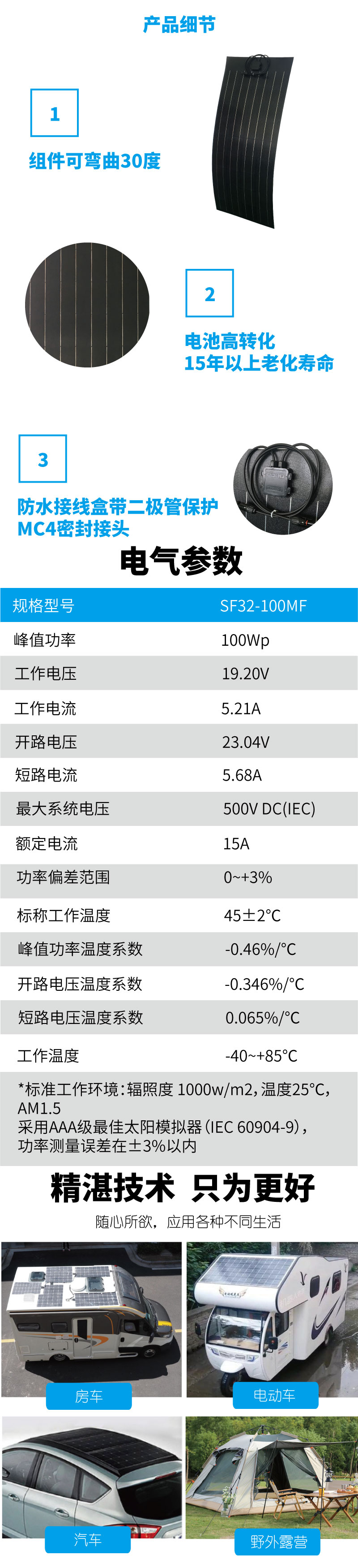 源頭廠家供應單晶柔性太陽能板房車100W發電板并網離網發電批發